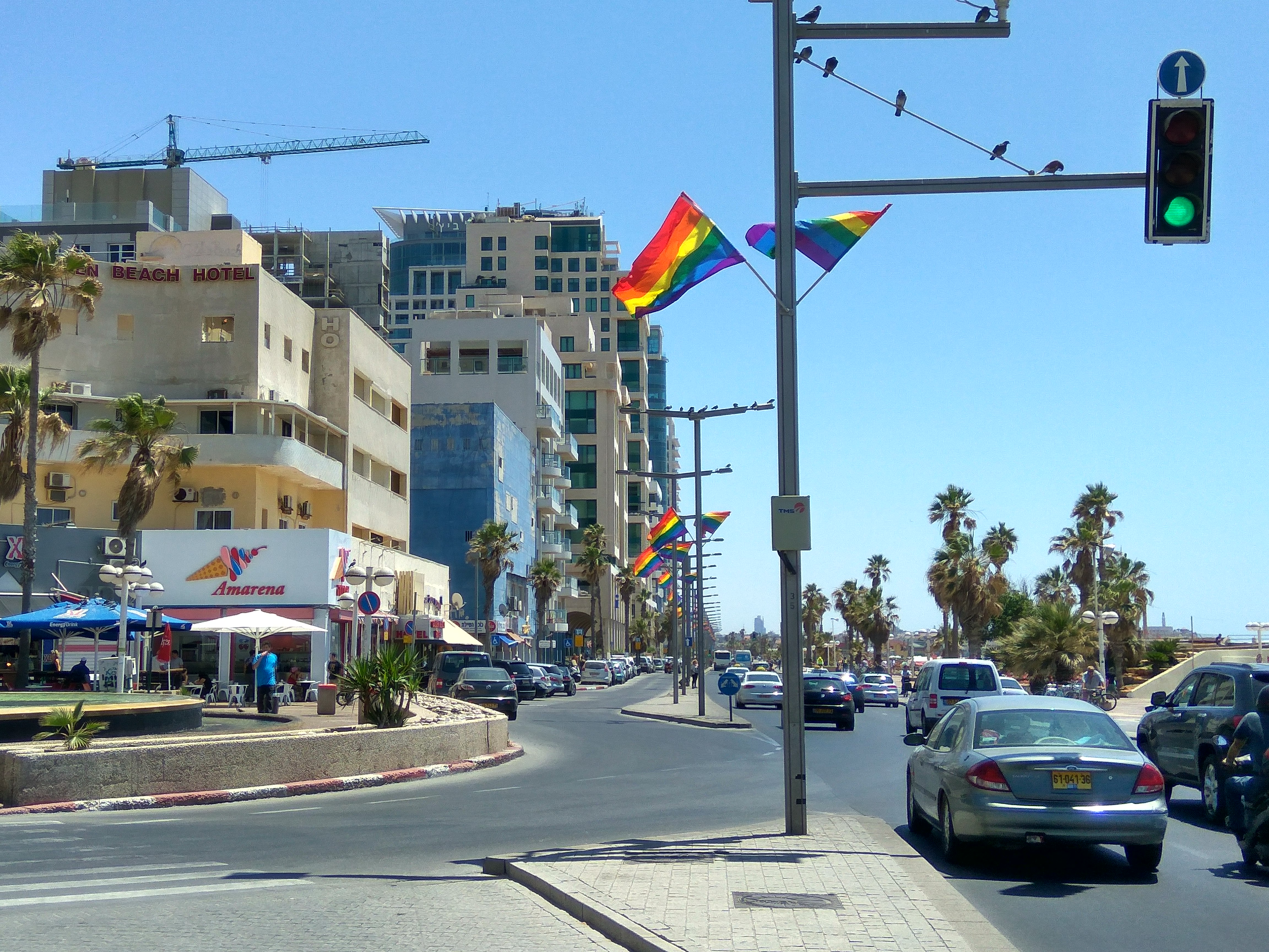 The city was preparing itself for the Gay Pride 2016, as was clear from the rainbow flags that decorated every post in the beach area. Tel Aviv is also known for its very active gay community.