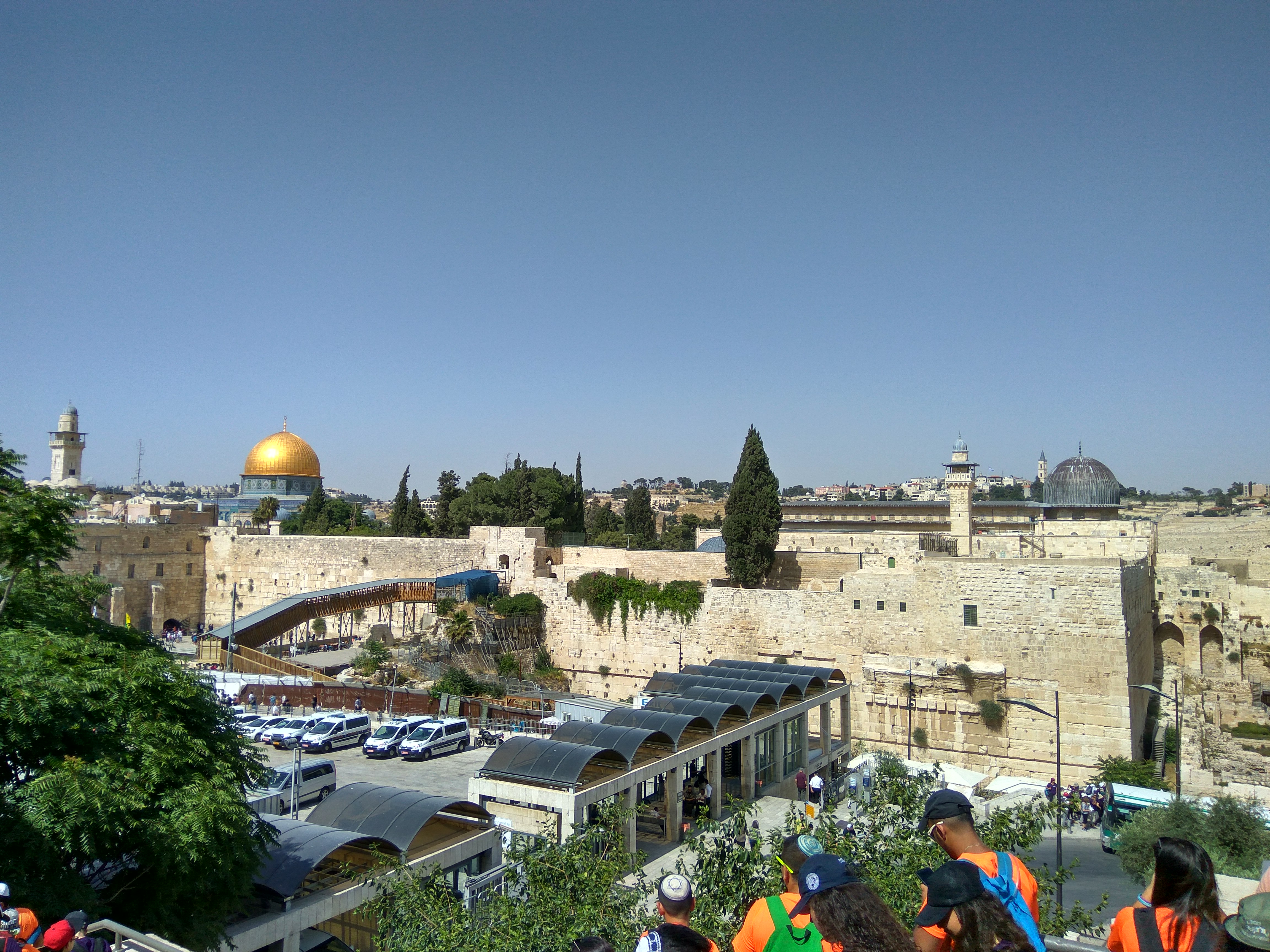 While only Muslims can enter the Temple area and pray in the Mosque. Israeli security forces (well armed, of course) stand at every gate to stop intruders. Apparently, a quick test about Islam can be asked to verify one visitor’s faith.This is still very controversial.