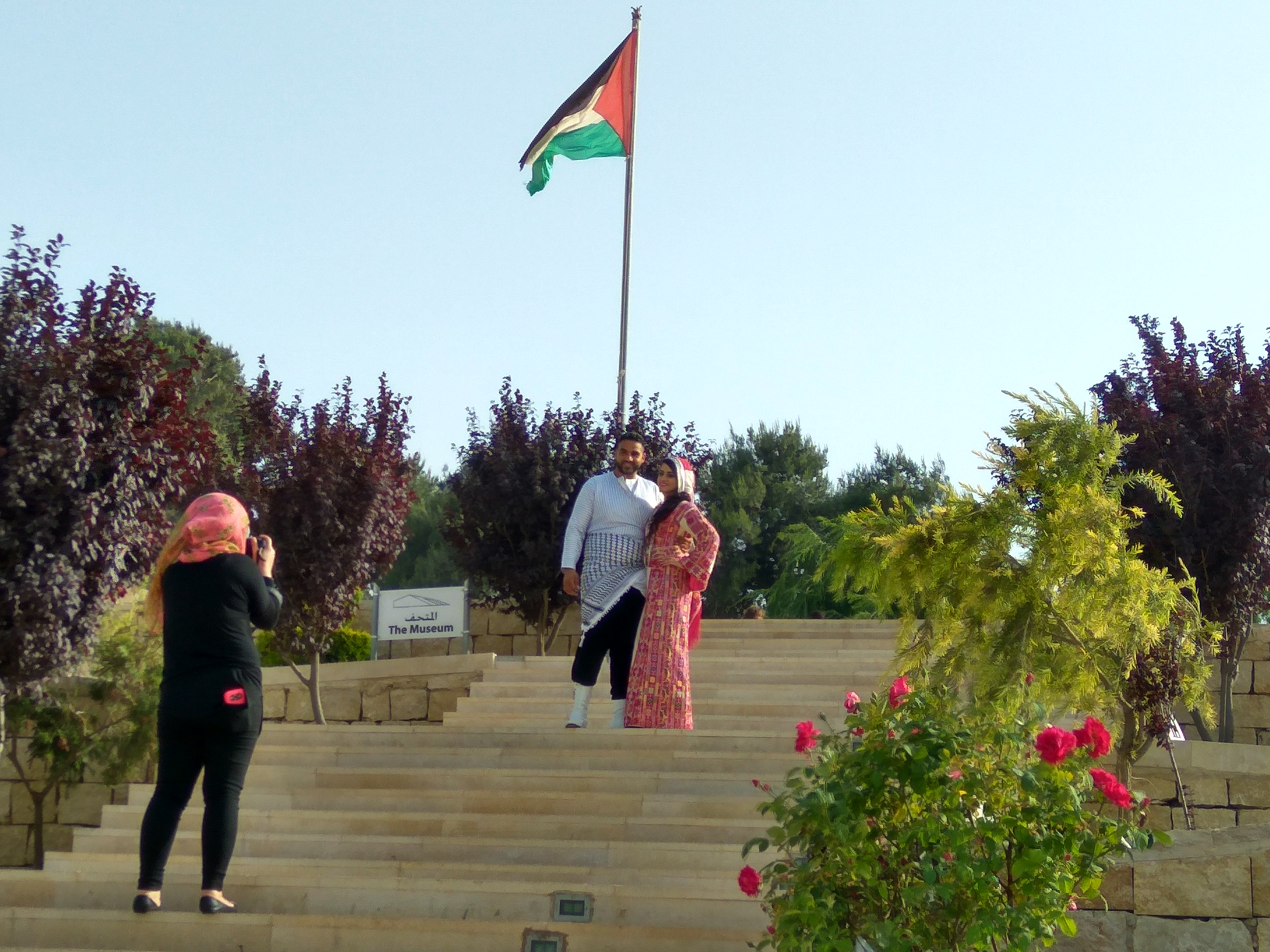 In the Mahmoud Darwish park, we met a couple right after a wedding. Their traditional dresses were wonderful.