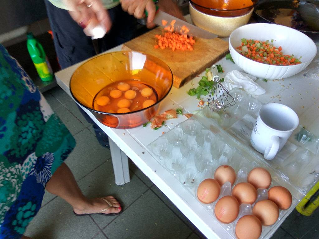 2 – The eggs. This is a highly debated part and every kitchen has a “house rule”. Some will use only the yolks (the yellow part), some will use a mix. I use whole eggs. 1 egg per person + 1 “for the pot” (so for 4 people, use 5 eggs).