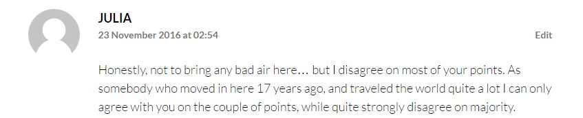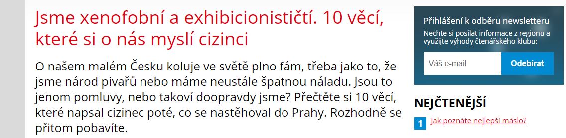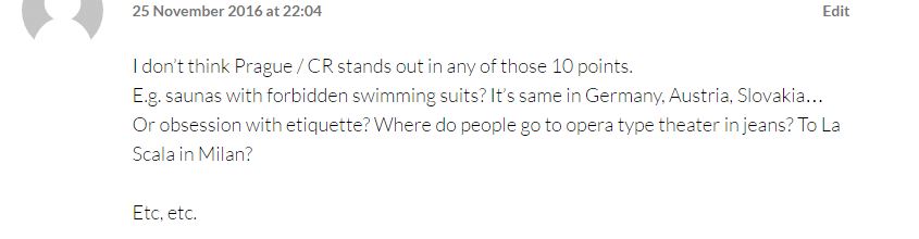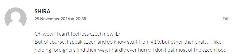 Without informing me or asking for any kind of permission, a website (which I won’t name, because I don’t want to promote it any further) made a summary of my post, translated it to Czech, and published it with a title that says (basically) “We are xenophobes and exhibitionists. 10 things that a foreigner thinks of us”.