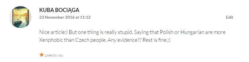 There is a line where I wrote that “[Xenophobia] could be much worse, like in Hungary or Poland”. Nobody complained from Hungary (and is this bad news or good news?).