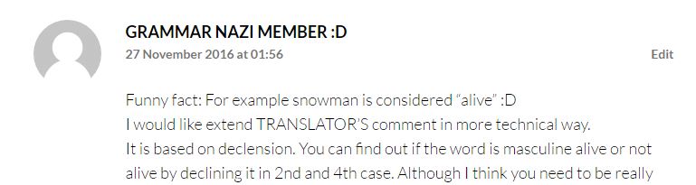 A lot of people offered help with the language, by providing more information or explanations on some of the grammar hardest points. Those didn’t really help, but I appreciated the effort.