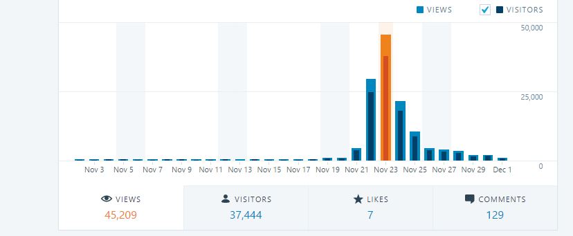 The post just got viral, scoring 121k + views as of now, and counting. Even now, after more than a week, it’s bringing more than 1000 views to the blog, every day. Previously I would get a maximum of 20, 30 clicks on a no-post day . What will happen next? I don’t know.