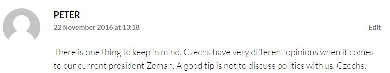 And I have to disagree with Peter. Just because we have so different opinion when it comes to our current president Zeman doesn’t mean it’s not allowed to speak about it! And specialy mr. Zeman is person who is not affraid of speaking about others with no respect and lot of sarcasm, so there is no need to be excessively polite and respectful.