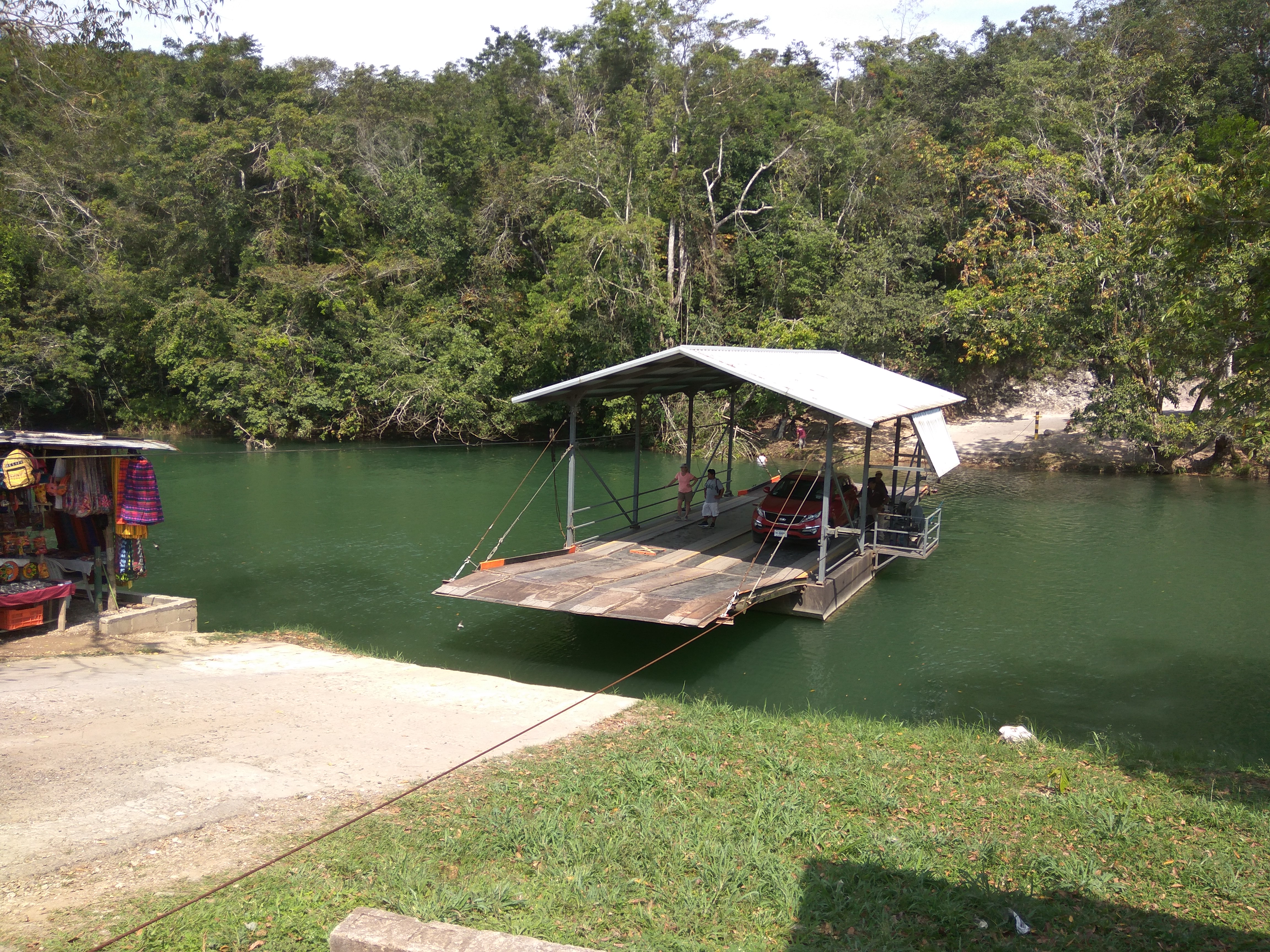 First, we went to visit Xunantunich (pronounce: xoo-nan-too-nich, with the soft ch like in church). You can access the site by crossing a hand-operated bridge, which contributes to create the feeling of travelling back in time.