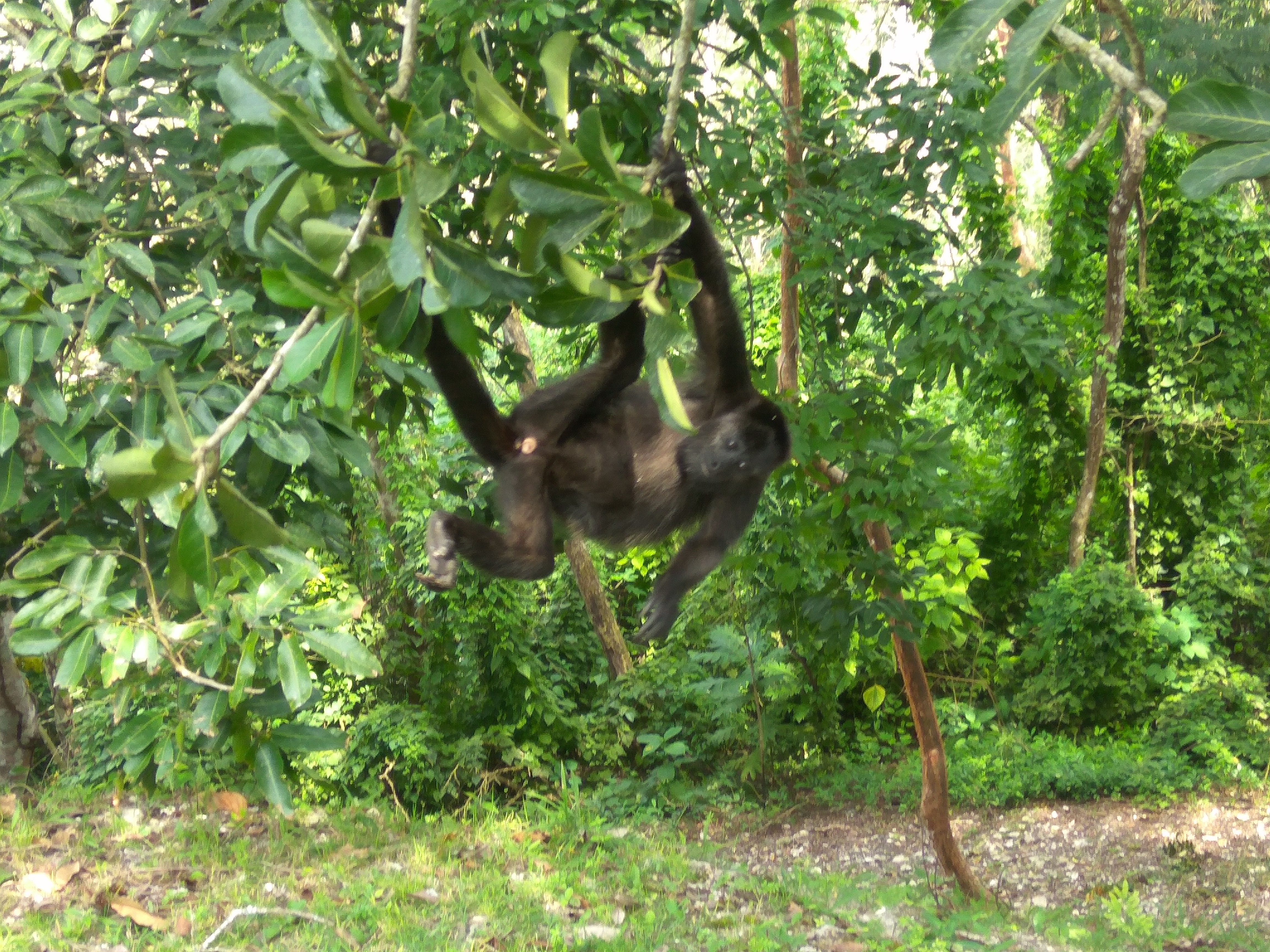 Also, the site is immersed in the jungle, and so it’s also very possible to meet wild animals in their own habitat. We met a couple of howling monkeys, that were apparently not at all scared by us, very happy to show off a few moves for us.