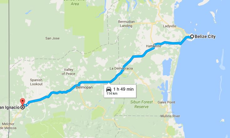 From Belize City we rented a car, and went to San Ignacio. It’s 120 km on a generally good road. We passed Belmopan, the capital of the country, on the way, stopping at an Italian restaurant that… was not the most memorable part of the journey. Never mind.