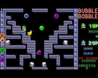 With one player controlling Bub and the other controlling Bob, the dragons can jump, collect items for points and blow bubbles to capture and kill their enemies.