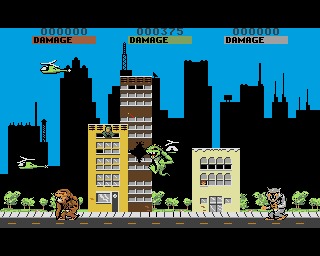 The game supports up to 3 simultaneous players, who control giant monsters (a Gorilla, a Lizard and a Werewolf respectively) trying to destroy an entire city. You can punch skyscrapers, destroy infrastructure, and since police and the army will try to stop you, you can fight the armed forces as well, and that’s a nice bonus.