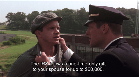 Thanks to their “special connections”, Red and his mates get the job. While working on the roof, Andy overhears as Captain Hadley complains about some inheritance money he received. “The government will take most of it”, he protests.