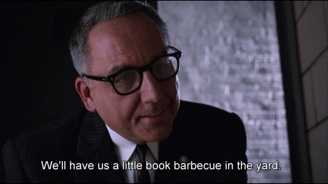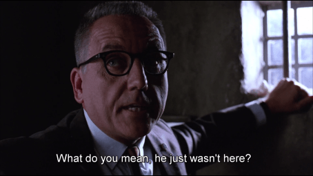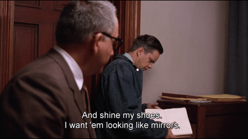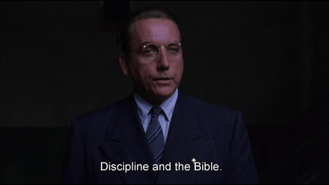 And speaking of the Devil, He is summoned. Warden Norton emerges as if from the shadows – a Doctor Faustus reference again – and gets acquainted with the prison wonder boy. Very aptly, Andy is reading the Bible when the two meet. This marks more or less the half-time for the movie, so it’s a clear turning point.