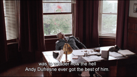 Andy becomes strangely complacent in this role. As he explains Red, he used to be a completely honest accountant, when he was Outisde.