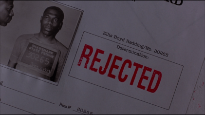 Right after, the scene moves to the Shawshank penitentiary. Inside, Red (Morgan Freeman) has been serving 20 years and is being interviewed for parole.