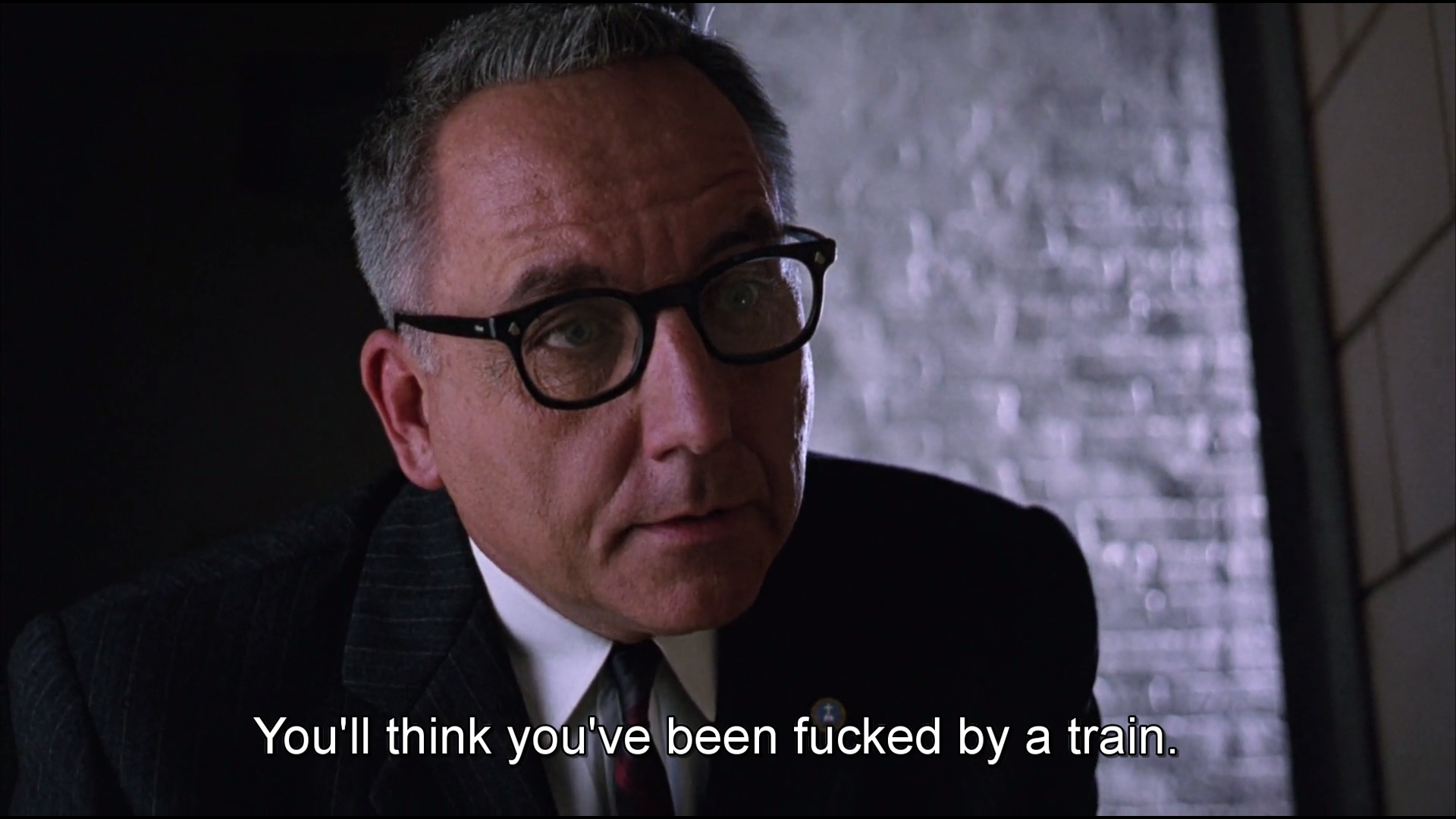 “There’s not a day goes by I don’t feel regret. Not because I’m in here, or because you think I should. I look back on the way I was then, a young, stupid kid who committed that terrible crime. I want to talk to him. I want to try to talk some sense to him, tell him the way things are, but I can’t. That kid’s long gone and this old man is all that’s left. I got to live with that. Rehabilitated? It’s just a bullshit word. So you go on and stamp your forms, sonny, and stop wasting my time. Because to tell you the truth, I don’t give a shit”.