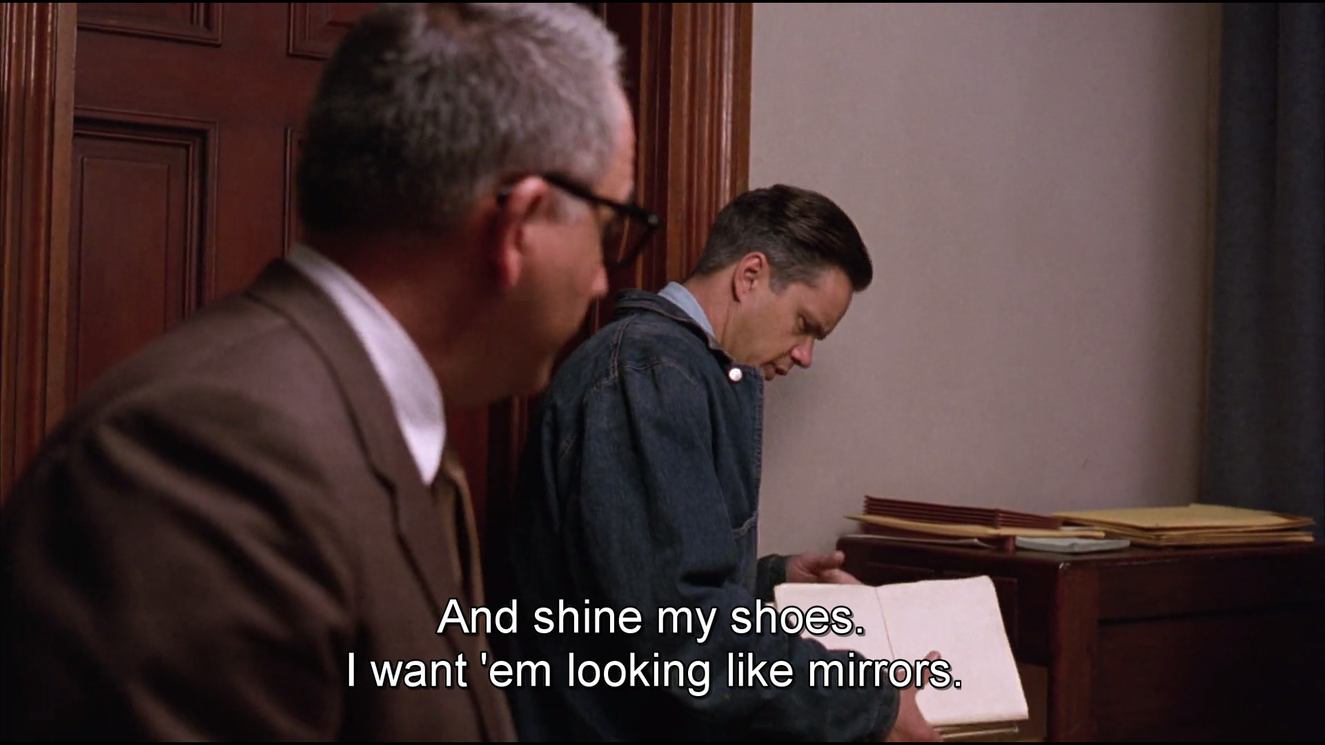 He also asks for a small geology hammer. Just something to practice his hobby. In a very fitting turn of events, it is the librarian Brooks who delivers it (hidden in a Bible).