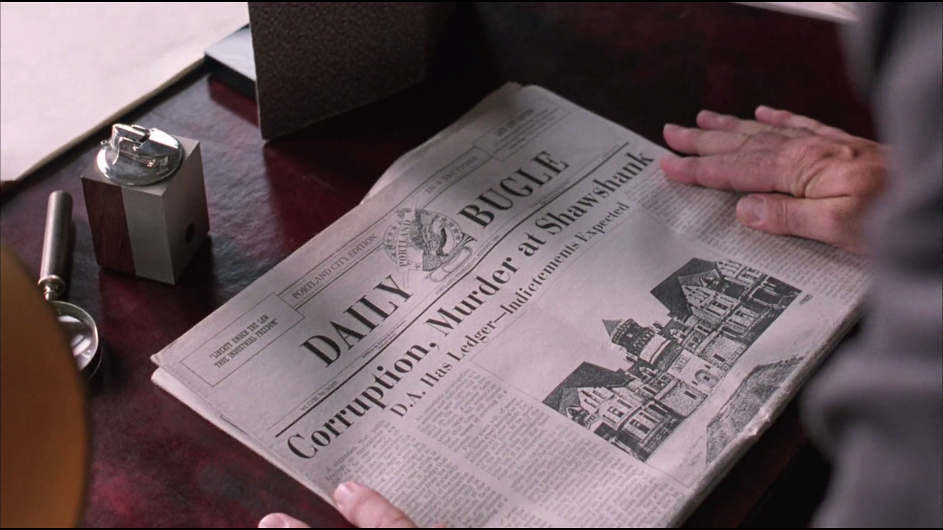 The corruption and violence at Shawshank are exposed to the press,