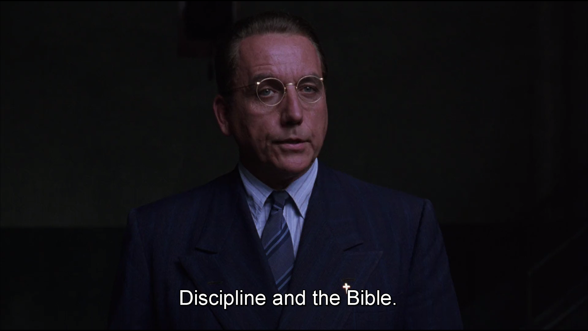 And speaking of the Devil, He is summoned. Warden Norton emerges as if from the shadows – a Doctor Faustus reference again – and gets acquainted with the prison wonder boy. Very aptly, Andy is reading the Bible when the two meet. This marks more or less the half-time for the movie, so it’s a clear turning point.